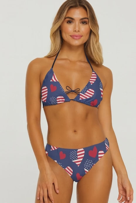 Make waves this season in our USA, UK and Jamaica Flag Inspired Women's Bikini Set, designed for confident women who love standout style. Featuring a striking red, white, and blue also our green gold and black abstract print, this bikini delivers edgy fashion with timeless swimwear comfort.